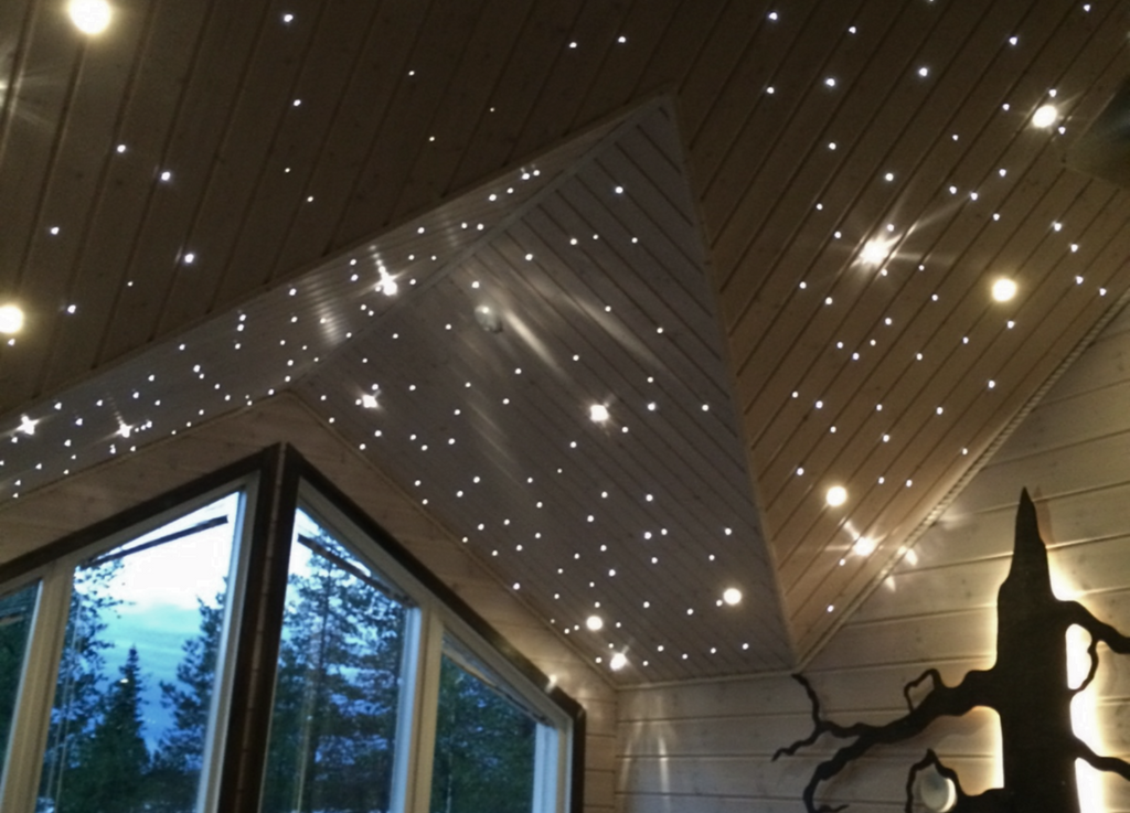 The classic Starry Sky Set creates a beautiful eye-catching element. The Twinkle series adds a touch of magic with sparkling effects that mimic a real night sky, bringing a calming, atmospheric glow. The Crystal series enhances the experience further with beautiful crystals that bring an extra sparkle to the space. For sauna installations, the selection includes the Sauna Starry Sky Set — the only model specifically designed to endure high sauna temperatures.